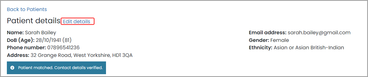 To remove a patient, first click on 'Edit details' next to the Patient details: