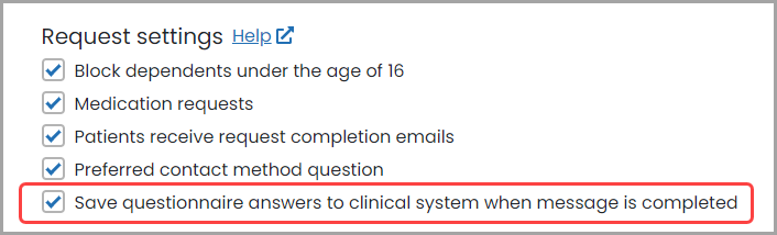 Save questionnaire answers to clinical system when message is completed (pilot practices)