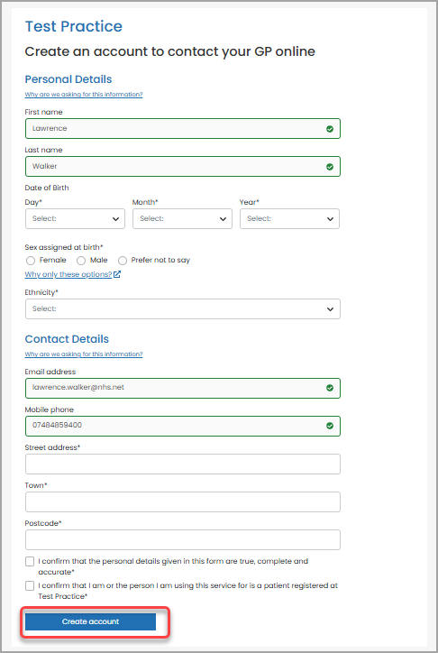 When you have finished, click the Create an account button at the bottom of the page. And you will see a message confirming that your changes have been saved.