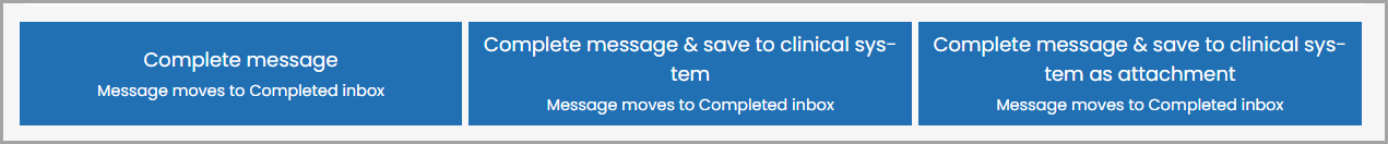 The 'Complete message and save to clinical system as attachment' button will complete the request, move the request to the Completed inbox and save it into the patient's record as a pdf.