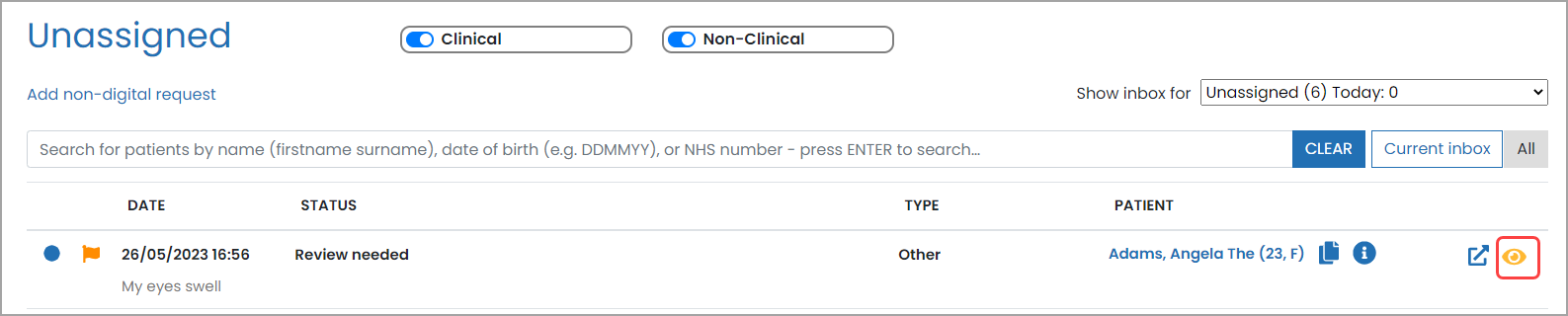 - Non-clinical requests should be assigned to a non-clinical member of staff or non-clinical group.