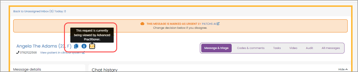 A handy eye icon will appear in your Patchs inbox when a request is being viewed by another member of staff.